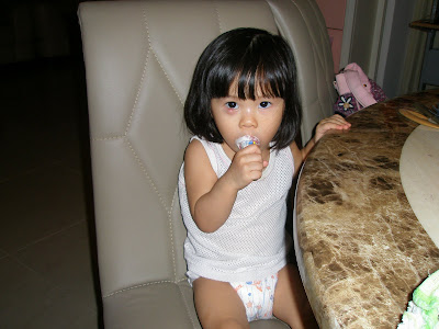We had just returned from our appointment with the ophthalmologist at ISEC. He did an eye examination on Baby and told us that she has a condition called Chalazion. A chalazion is a lump of the lid that is caused by obstruction of an oil gland within the upper or lower eyelid. This lump may increase in size over days to weeks and may occasionally become red, warm, or painful.