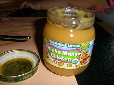 The other day, during our stay at Hilton Sentral Hotel, I tried my luck with a jar of Healthy Times organic mango chicken baby food for Baby C during breakfast. I thought she would accept it as it is a savoury food, with chicken. I was delighted when she did not spit out her first spoonful (well, it was just a quarter of spoon) of the baby food. However, with the second and third and following spoons, she was merely forcing herself to swallow the food down her throat. I gave up and gave the jar food to my maid who liked the taste of the baby food and used it as bread spread!