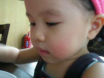 But it wasn’t anything serious. She had just scratched her nose! This fella is learning all the bad habits from her cheh cheh who likes to scratch, bite and peel the skin off her fingers and toes. There always isn’t anything wrong with her fingers and toes but it’s just a bad habit that she has picked up and a self-inflicting pain one too. Gosh, I must help my eldest girl break this habit before all her fingers and toes turn into horribly awful ones, as if she was one abused kid!