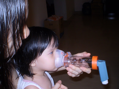 Ever since Baby was an infant, she never once took any oral meds to treat her cough or runny nose. That’s because since she was 7 weeks old, she had to take oral antibiotics everyday until she was 14 months old (that’s after the Ureteral Reimplantation surgery in May last year). Our paed has all the while been not in favor of her eating too much meds as she already had enough of meds in her body. So each time Baby is down with a flu, stuffy nose and phlegm, I will let her inhale the Ventolin, given through the Aero Chamber. Though very costly, the Aero Chamber is a good investment.