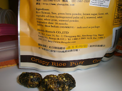 Crispy rice puff with seaweed and sesame. This was purchased from an organic shop.