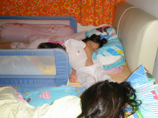 Did you know what prevented Baby from going near my boops? Just one small RED cili padi muahahahah! She was so terrified of my hot and spicy boops that she dared not sleep with me on our king-sized bed. Just by looking at me when I rubbed the chili on my boops was enough to stop Baby from going near my boops *evil grin* Two nights ago, she climbed onto her jie jie’s bed and dozed off in a sitting position like this, as she didn’t want to sleep with me: